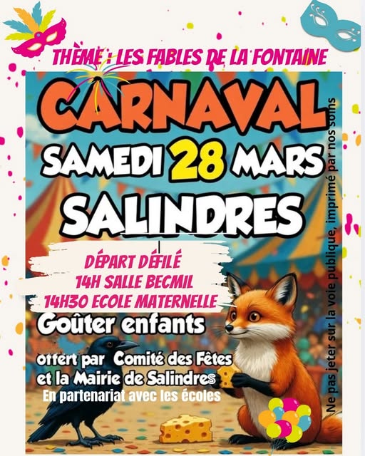 CARNAVAL ‐ Samedi 28 mars organisé par les écoles et le comité des fêtes sur le thème de cette année : Les fables de La Fontaine.