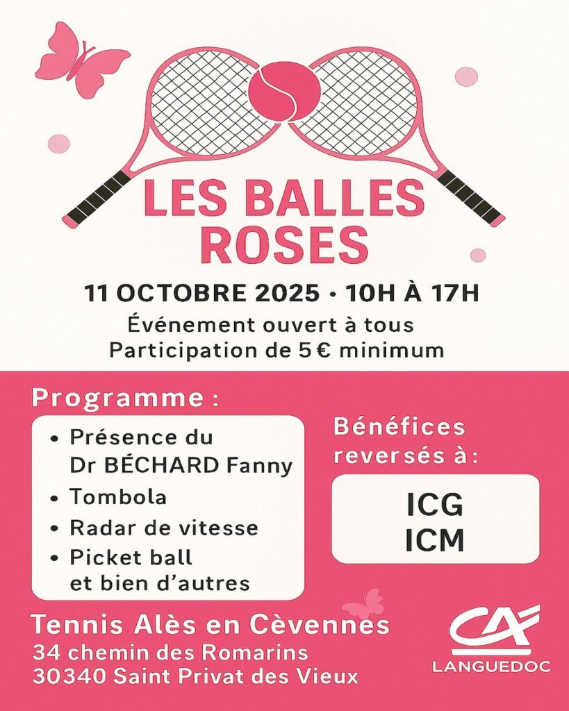 Les clubs de tennis de Salindres, Les Mages, Cendras et tennis Alès en Cévennes renouvellent l’opération « les balles roses ».