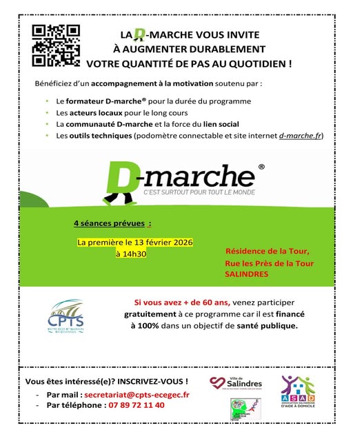 Inscrivez-vous par mail à secretariat@cpts-ecegec.fr ou par téléphone au 07 89 72 11 40 et participez à la première séance le jeudi 13 février à 14h30 à la Résidence de la Tour.
